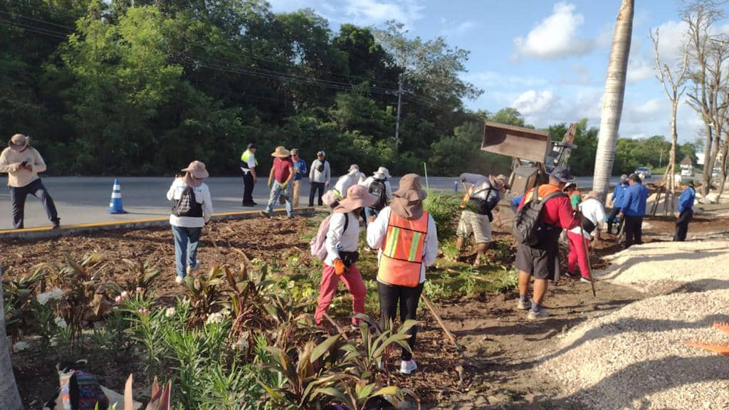 “Hoy llevamos 3 mil ejemplares; 2 mil 420 plantas y 580 de ornato, sobre el tramo que va de La Moneda al filtro policiaco hacia Tulum, donde además se distribuye grava y triturado.