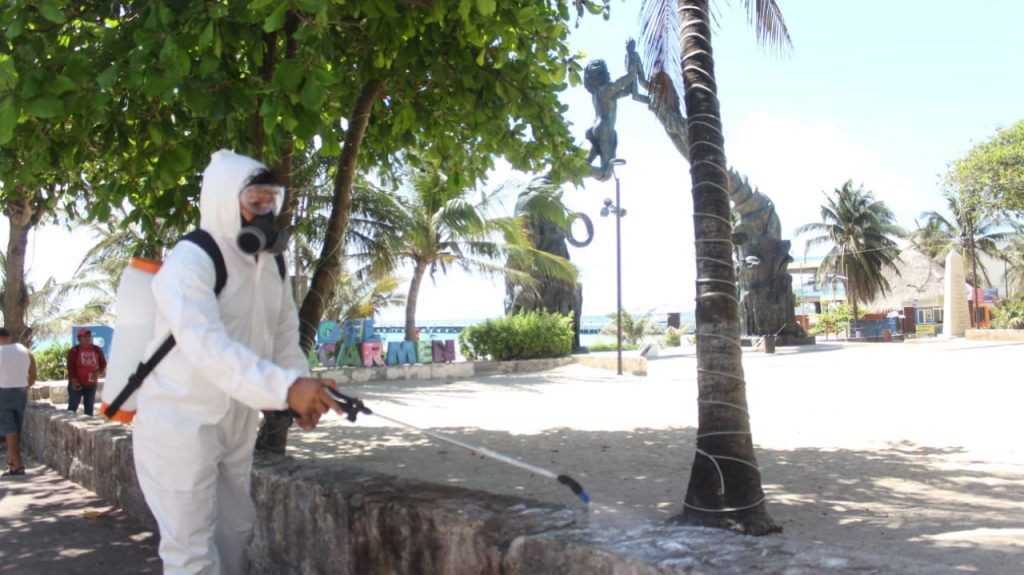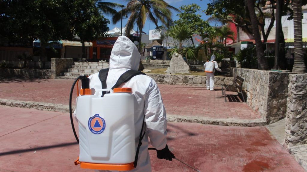 Los elementos están distribuidos por toda la ciudad y en Puerto Aventuras realizando labores de sanitización en las áreas públicas, transporte colectivo y urbano, taxis, bancos, supermercados, escuelas, parques y zonas comerciales, entre otros.