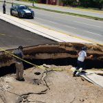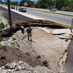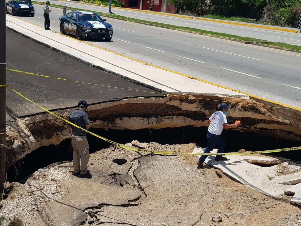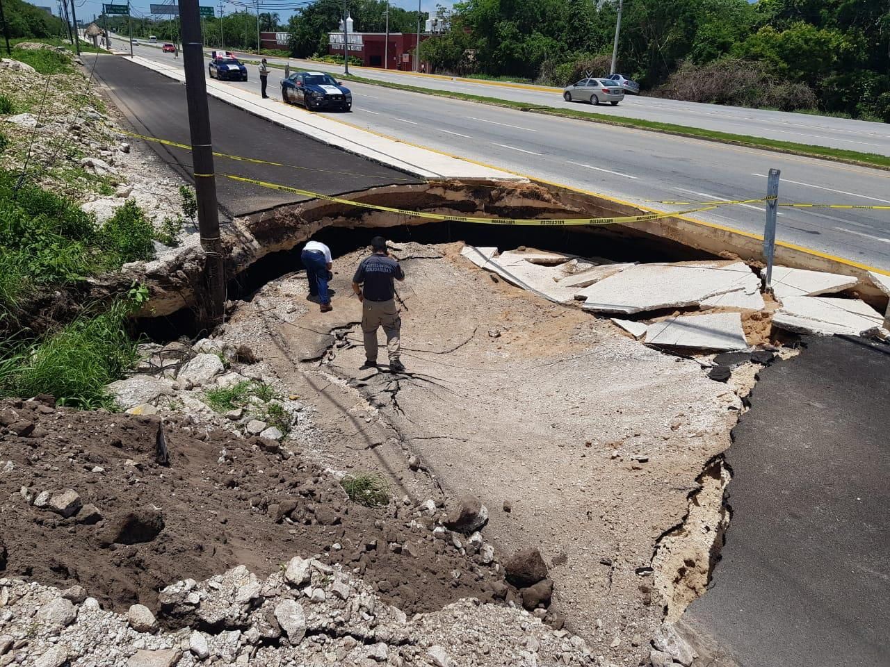 Un socavón de tierra se abrió la mañana del 13 de junio del 2020 en la carretera que une los destinos turísticos de Playa del Carmen y Tulum a la altura del hotel Royal Tulum informaron las autoridades de protección civil en Solidaridad, Quintana Roo.