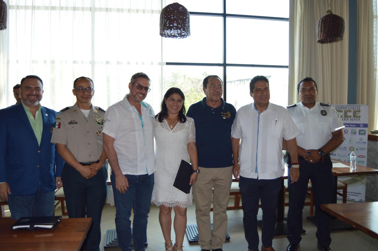 coordinador de la Mesa Ciudadana de Seguridad y Justicia de Cancún e Isla Mujeres; Jesús San José, presidente de SINDEMEX RM; Juan de Dios Guitrón presidente del Club Rotarios Playa del Carmen; Tomás Farfán, vice-presidente del CCERM, Luis Vidal, Tesorero CCERM, Sergio Camas, presidente del Colegio de Ingenieros de Riviera Maya; Juan Carlos Hernández, presidente de la CANIRAC Playa del Carmen y Eric Martínez ex-presidente del CCERM, entre otros.