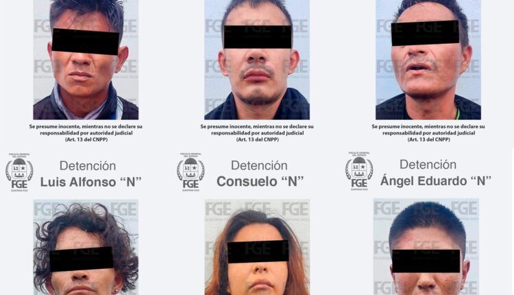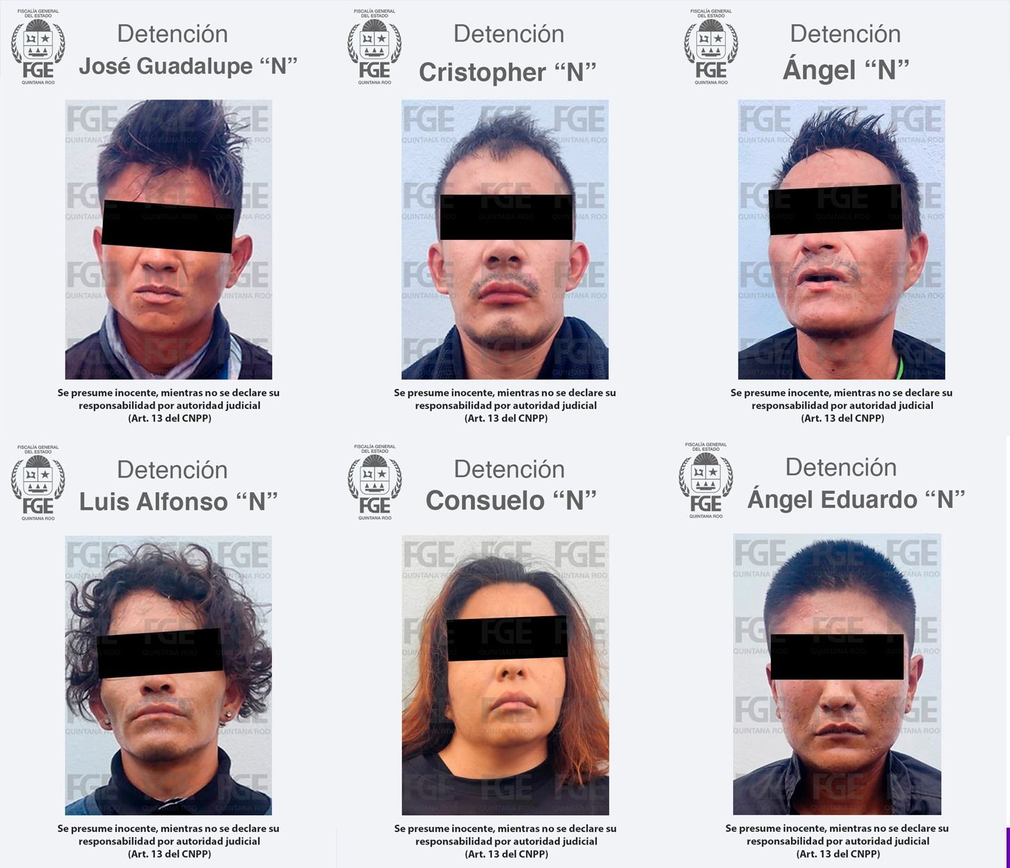 Los detenidos fueron identificados como José Guadalupe “N”, Luis Alfonso “N”, Ángel “N”, Cristopher “N”, Ángel Eduardo “N” y Consuelo “N”.