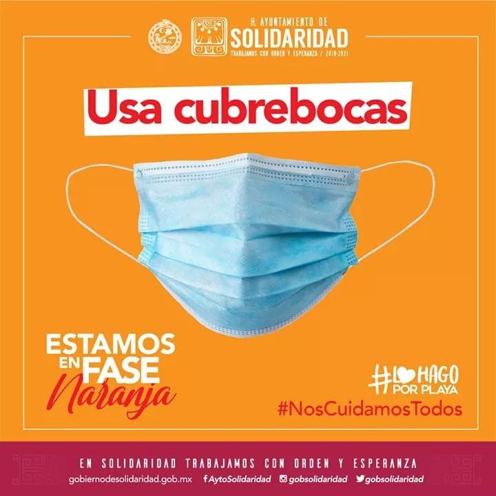 Sin embargo, la presidenta municipal de Solidaridad, Laura Beristain Navarrete, hace un atento llamado a la sociedad a no bajar la guardia y redoblar las medidas de salud y seguridad que exige la Nueva Normalidad: uso de cubrebocas, sana distancia, higiene de manos, gel desinfectante, y protegerse el rostro con googles, careta o lentes en caso de salir a la calle y si no tienes que hacerlo, lo mejor es permanecer en casa.