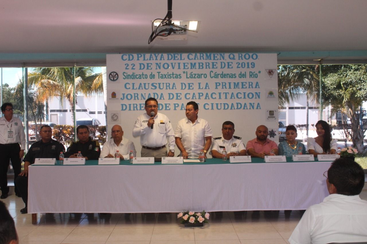 Con la activa participación de socios y operadores de taxis, combis colectivas y vans foráneas, concluyó la jornada de talleres y pláticas sobre seguridad y educación vial, impartidas por personal de la Dirección de Participación Ciudadana y Prevención del Delito de la Dirección General de Seguridad Pública y Tránsito de Solidaridad que dirige el comandante Jorge Robles Aguilar en coordinación con el sindicato de taxistas “Lázaro Cárdenas de Río”, en beneficio de la población.