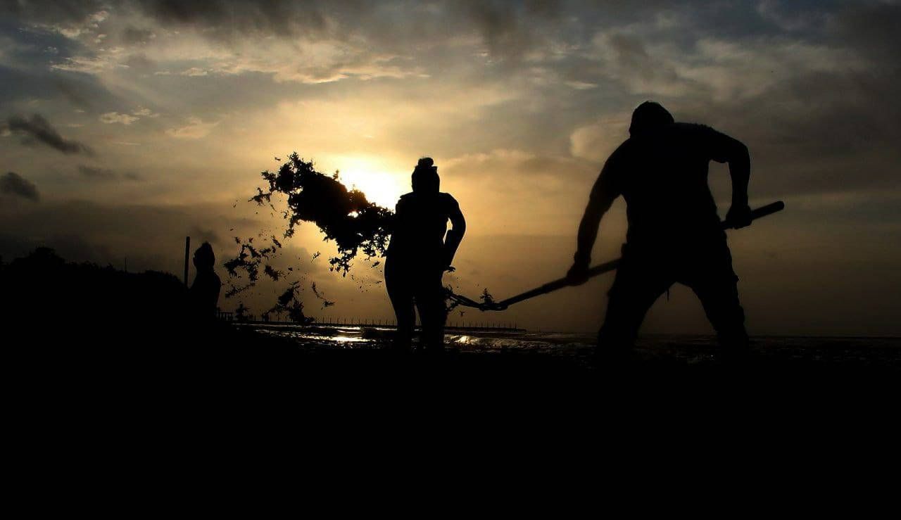 Dichas acciones se llevaron a cabo del muelle Navega a playa el Recodo, en donde, con el apoyo de bieldos, rastrillos, carretillas, se logró retirar de manera conjunta aproximadamente 180 toneladas.