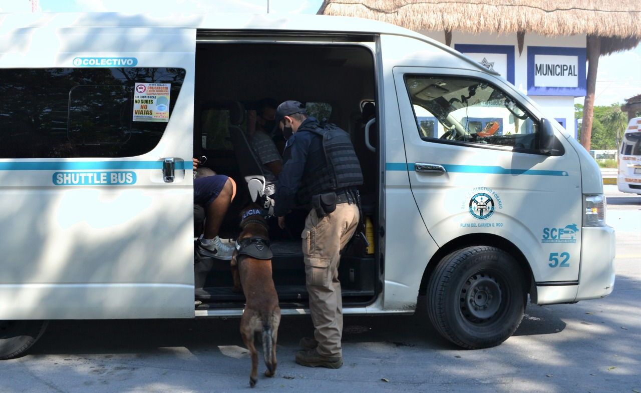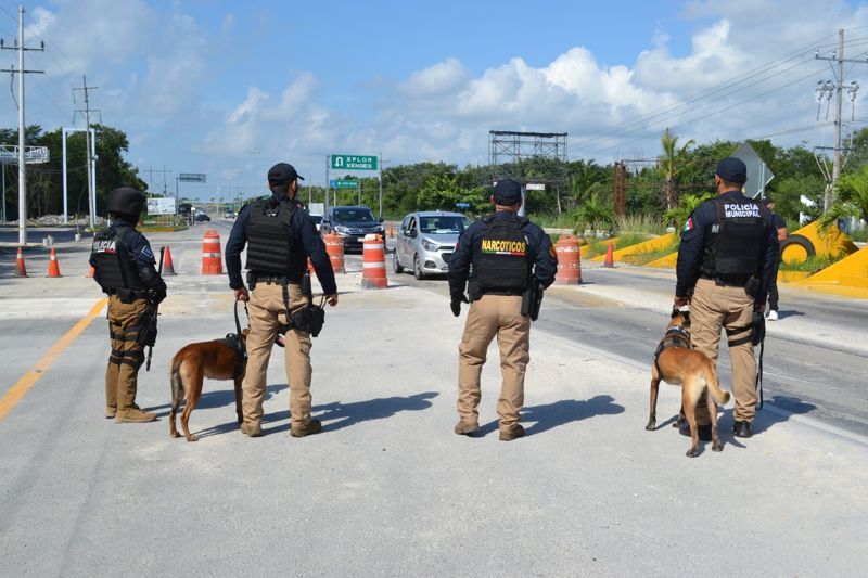 La Unidad Canina de la Secretaría de Seguridad Pública y Tránsito participa en los operativos de prevención y vigilancia en los filtros de seguridad en las tres entradas de Playa del Carmen, donde contribuyen a detectar personas, vehículos del transporte público y particulares que trasladen artículos ilícitos, siempre con pleno respeto a los derechos humanos y dentro del marco legal; estas acciones no impiden el libre tráfico.