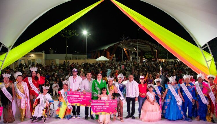 Previo a la coronación y colocación de bandas a las reinas y reyes infantiles, Vanesa Yamileth y José Armando; discapacidad, Katia Guadalupe y Carlos Alejandro; adulto mayor, Estelita y Limbano; diversidad, Marina y Alex Adrián; juveniles, Pilar Alejandra y Junior Sánchez, y de la alegría, Jaqueline Álvarez, las familias disfrutaron el paseo de carros alegóricos y comparsas por las principales vialidades de la comunidad.