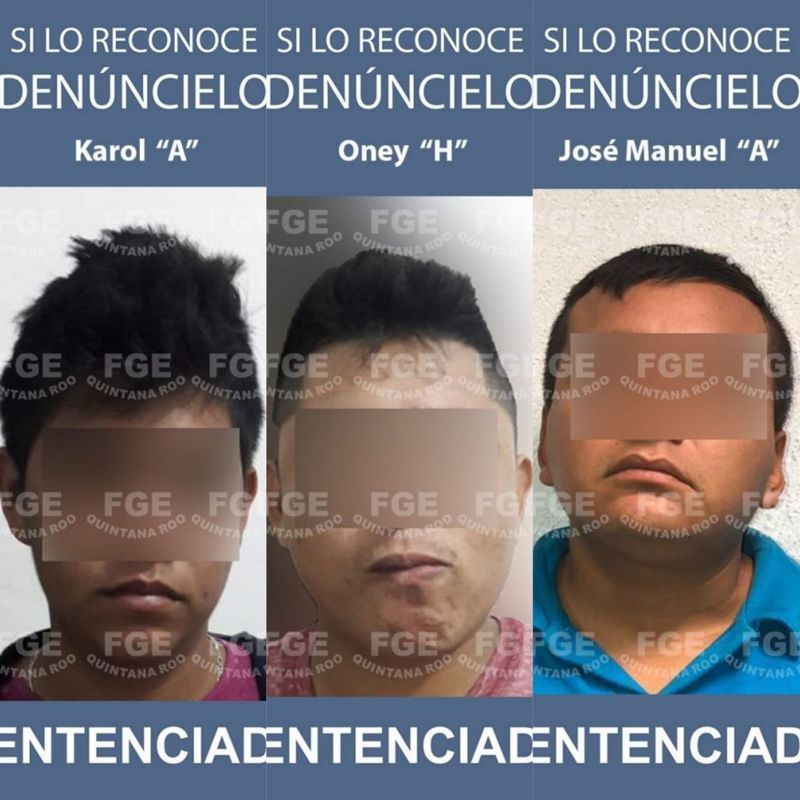 100 años de prisión para 3 secuestradores. La Fiscalía General del Estado de Quintana Roo (FGE) informó que derivado de la labor de fiscales adscritos a la Fiscalía Especializada en Investigación de Secuestros, un juez penal dictó sentencia condenatoria de 100 años de prisión para José Manuel A., Karol A., y Oney H. por los delitos de secuestro agravado y secuestro exprés.