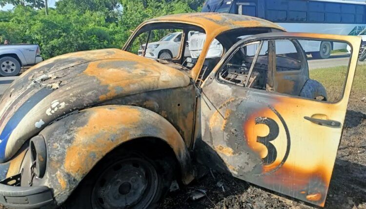 Debido a una falla mecánica un vehículo Volkswagen se consumió en su totalidad sobre el Boulevard playa del Carmen, a la altura del sindicato de taxistas Lázaro Cárdenas del Río en dirección de norte a sur, alrededor de las 4:30 de la tarde.