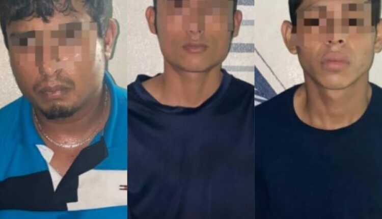 Tres sujetos fueron asegurados por policías de la Secretaría de Seguridad Pública y Tránsito Municipal de Solidaridad, en posesión de un arma de balines, una réplica de un arma corta, una placa de estrella y tres pasamontañas.