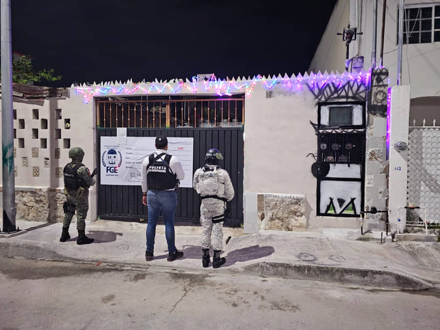 Solidaridad.- Doce personas, nueve hombres y tres mujeres, fueron detenidas durante ocho cateos cumplimentados en igual número de inmuebles en este municipio, por agentes de la Fiscalía General del Estado, Guardia Nacional y Secretaría de la Defensa Nacional (Sedena).