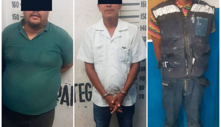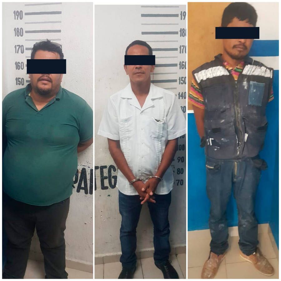 José Erik “N”de 41 años de edad, originario de Veracruz, Wenceslao “N” de 43 años de edad originario de Quintana Roo y Fidel “N” 44 años de edad originario de Veracruz fueron detenidos en avenida Colosio con avenida el Pedregal, del fraccionamiento Galaxia del Carmen 1 por el supuesto delito de extorsión en agravio de A.G.F. de 41 años originario del Estado de México.