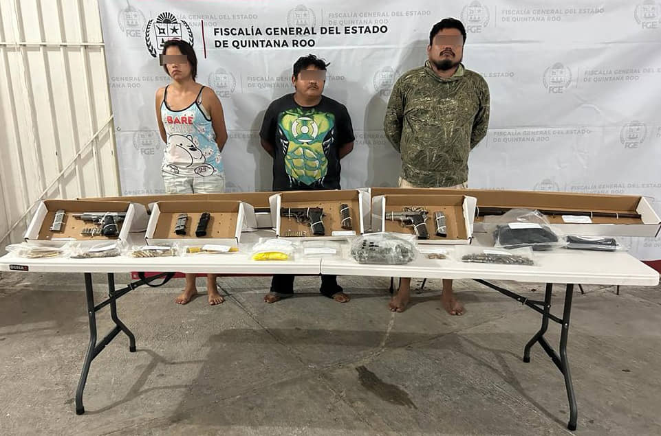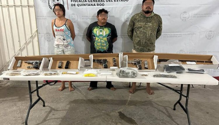 En una primera acción, elementos de la Fiscalía Especializada en Combate a Delitos de Narcomenudeo lograron la captura de Martín “N”, Vicente Guadalupe “N” y Erika Paola “N”, en el tramo carretero Valladolid-Cancún.