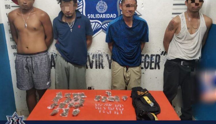 Policías de la Secretaría de Seguridad Pública de Solidaridad en coordinación con la Secretaría de la Defensa Nacional y la Secretaría de Seguridad Pública Estatal a través del operativo para la Construcción de Paz y Seguridad en Quintana Roo, aseguraron a cuatro sujetos en posesión de 49 dosis de diversos narcóticos en la colonia Colosio.
