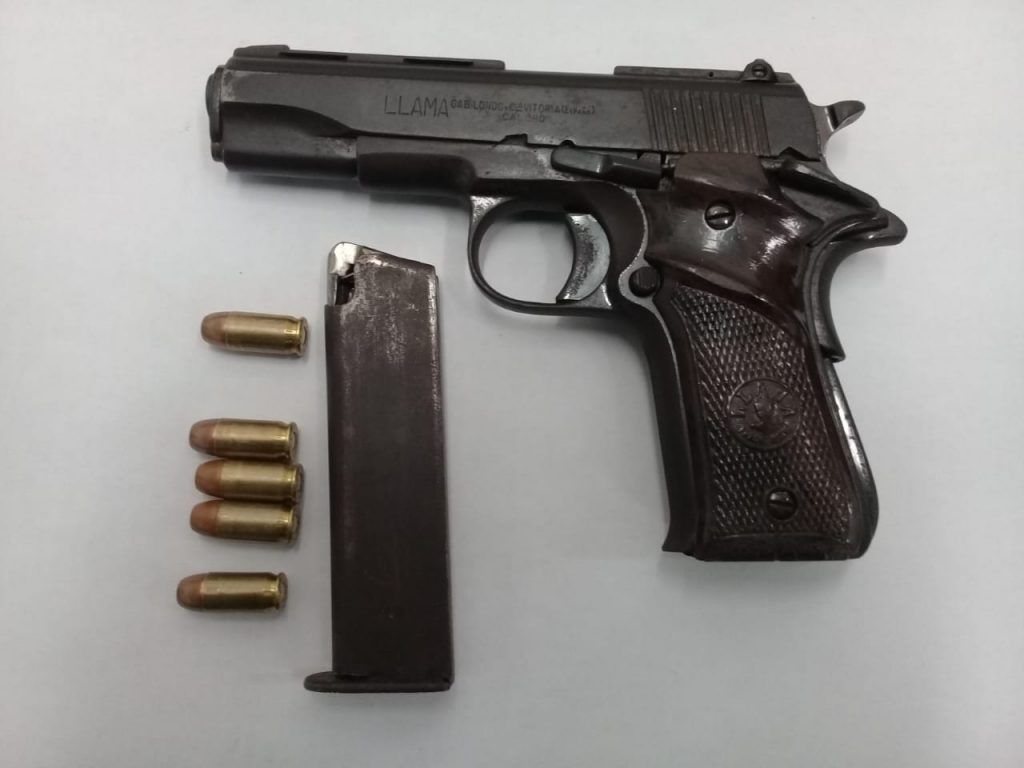 Con la descripción del sujeto y las características de la motocicleta en la que se transportaba, se inició un operativo de búsqueda, logrando ubicarlo cuadras más adelante, tras informarle de los señalamientos en su contra, se le realizó una inspección de rutina encontrando en sus pertenencias un arma de fuego con cinco cartuchos calibre 380.
