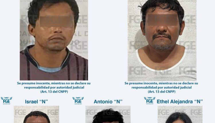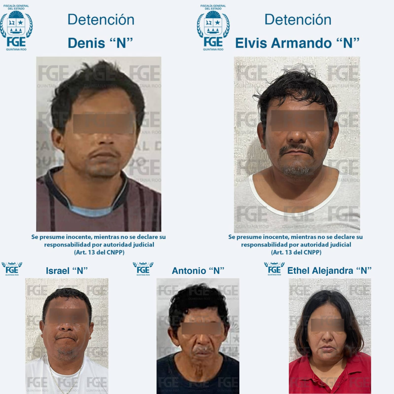 Las personas detenidas fueron identificadas como Israel “N”, Elvis Armando “N”, Ethel Alejandra “N”, Antonio “N” y Denis “N”; la captura fue posible gracias a los trabajos de inteligencia y denuncias anónimas ante la Fiscalía Especializada en Combate a los Delitos de Secuestro y Extorsión.