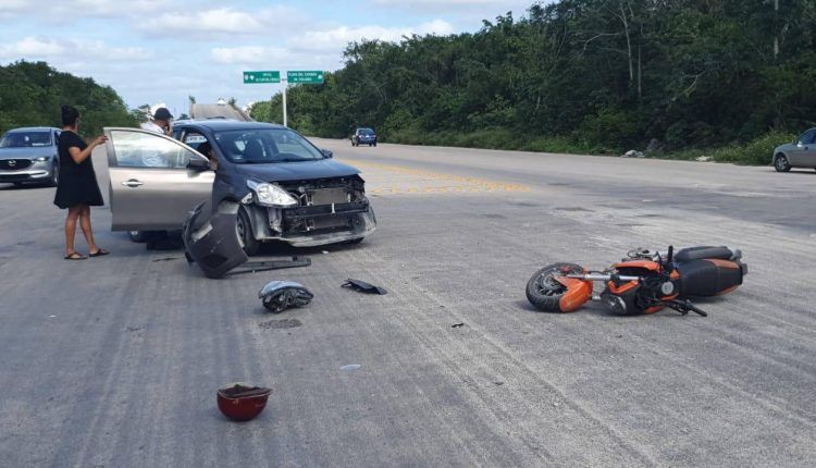 Ambos vehículos circulaban con dirección al sur, bajando el puente cuando el conductor de la unidad de cuatro llantas intento dar una vuelta en ‘u’ sin tener precaución e impacto a la motocicleta, los tripulantes de la moto salieron disparados y quedaron tendidos sobre el pavimento.