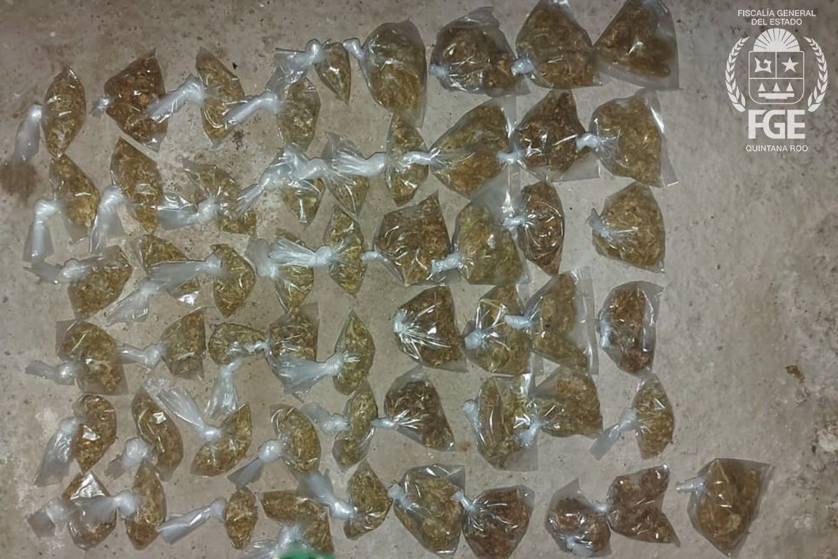 Los elementos de la Policía de Investigación ingresaron al inmueble y encontraron bolsas de plástico con material vegetal verde y seco, con las características similares a la marihuana, además de un papel con un mensaje dirigido a dos elementos policiacos.