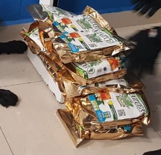 Por lo anterior se le notificó a la fémina sobre la reacción del canino al olfatear su maleta, al revisar el interior de la misma contenía 12 paquetes con vegetal verde y seco, características propias de la mariguana, por lo que procedieron al aseguramiento de los paquetes y el arresto de la fémina para determinar su situación legal.