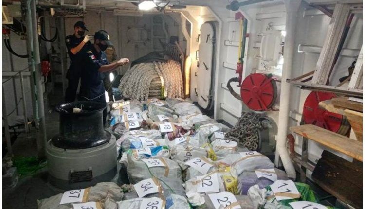 Al arribar al lugar, el avión Persuader mediante maniobras de búsqueda y localización avistó los bultos a la deriva, por lo que se ordenó a la patrulla oceánica desplegar su patrulla interceptora embarcada, logrando así la recuperación y aseguramiento de los 39 costales que se encontraban flotando, conteniendo en su interior paquetes rectangulares en forma de ladrillos con polvo blanco de clorhidrato de cocaína a 150 millas náuticas al sur suroeste de Puerto Chiapas, informó la Semar.