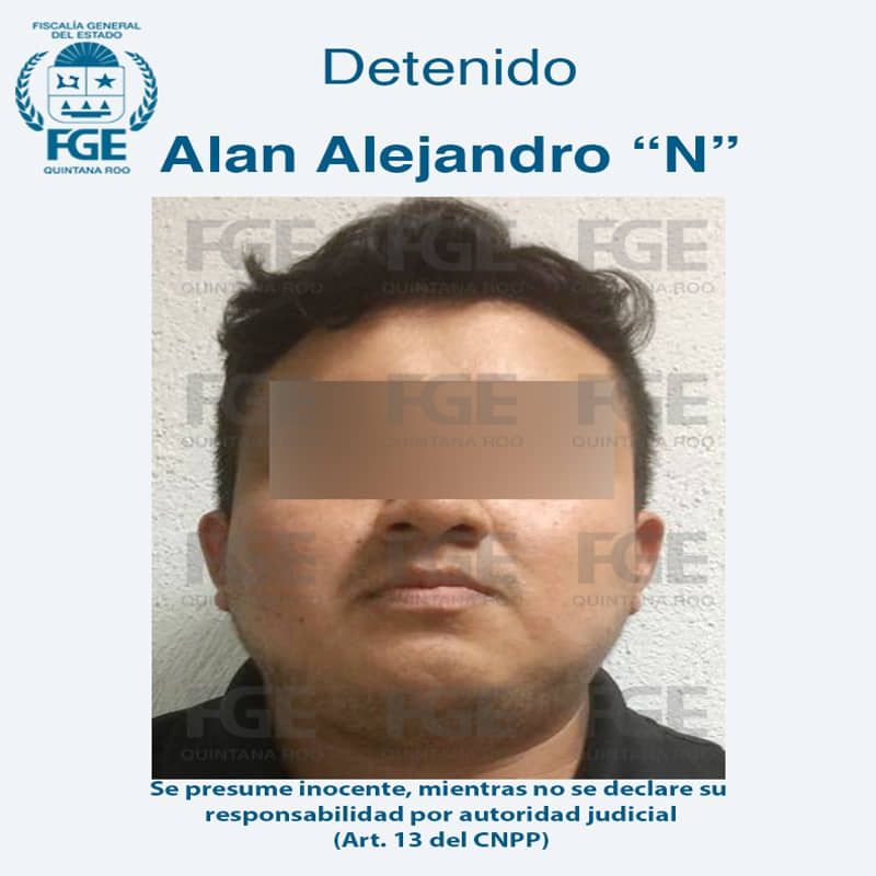 Alan Alejandro “N” fue detenido cerca de la avenida Constituyentes a la altura de la colonia Ejidal de este municipio, de donde fue trasladado a las instalaciones de la FGE Quintana Roo, para la realización de las diligencias correspondientes.