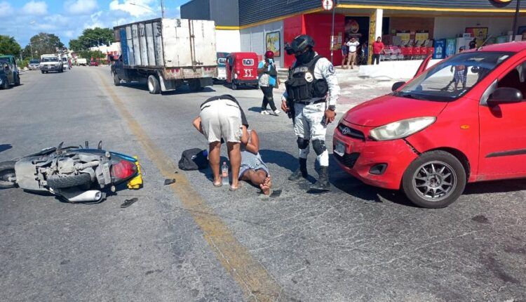 Una mujer embarazada terminó lesionada cuando circulaba abordo de una motocicleta marca Yamaha automática color azul con placa 07AWH5 y fue embestida por el conductor de un vehículo particular que le realizó un corte de circulación en el poblado de Puerto Aventuras.
