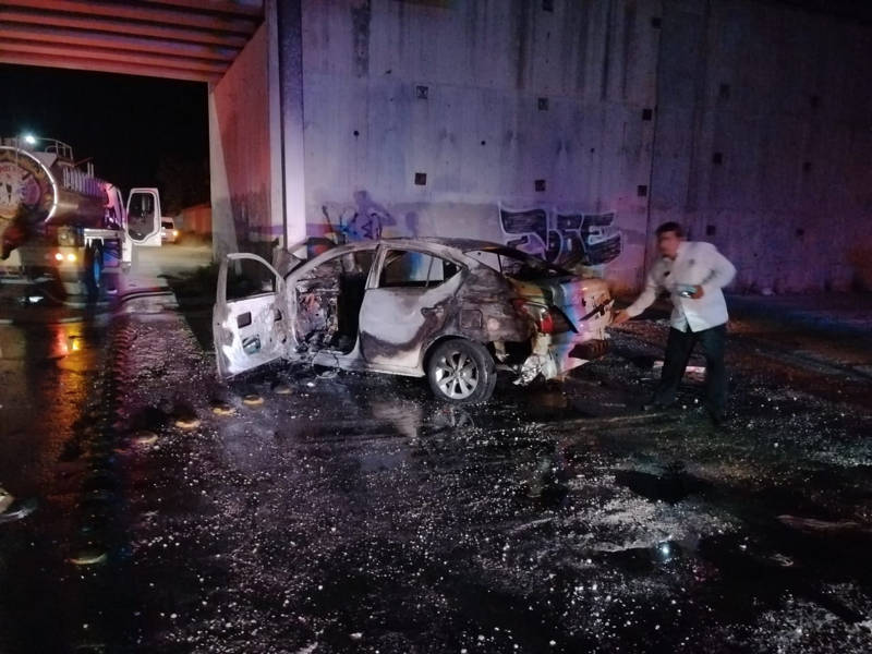 Se incendia taxi sobre autopista El Tintal.