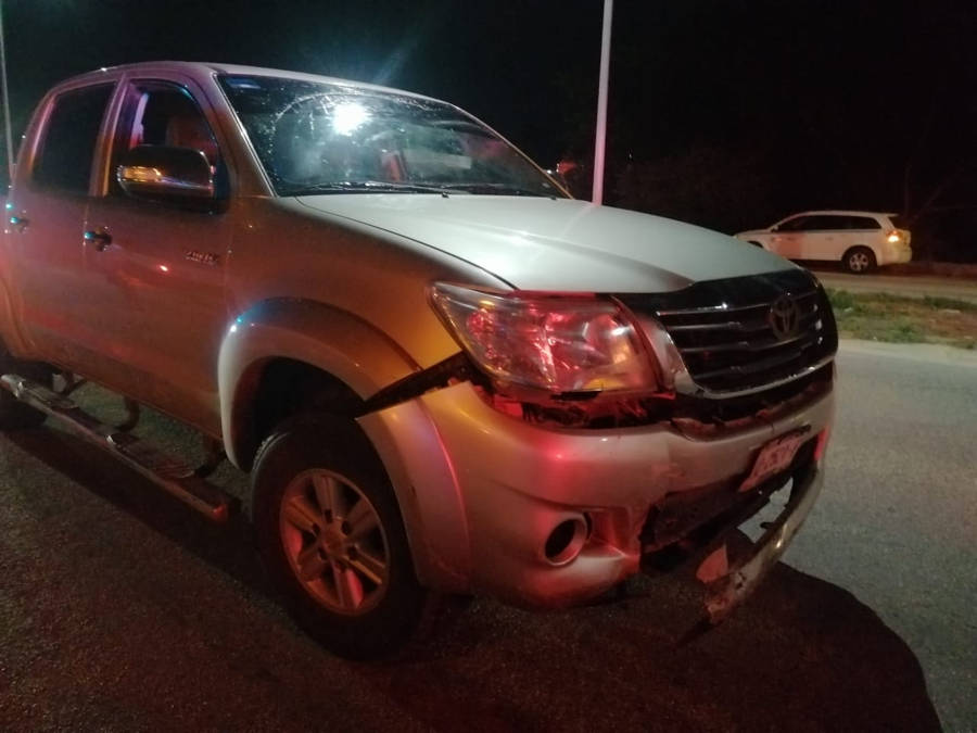 Según las fuentes, la camioneta intentó cruzar debajo del puente pero al no medir su distancia impactó al taxi perteneciente al sindicato Lázaro Cárdenas el cual salió proyectado contra un poste de acero.