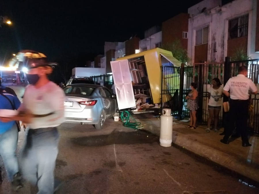 El hecho se registró alrededor de las 22:50 horas en el cruce de las avenidas Guayabas y 28 de julio en el fraccionamiento Los Olivos, cuando el conductor de un automóvil se estampó contra un puesto de comida rápida aplastándolo contra la reja metálica de una casa.