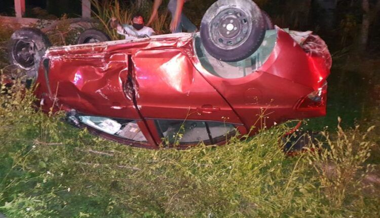 El vehículo aparentemente tipo Chevrolet Aveo color rojo acabo volcado con las llantas al aire, y completamente destrozado, automovilistas que pasaban alrededor de las 2:20 de la madrugada por la zona dieron aviso a la línea de emergencia 911.