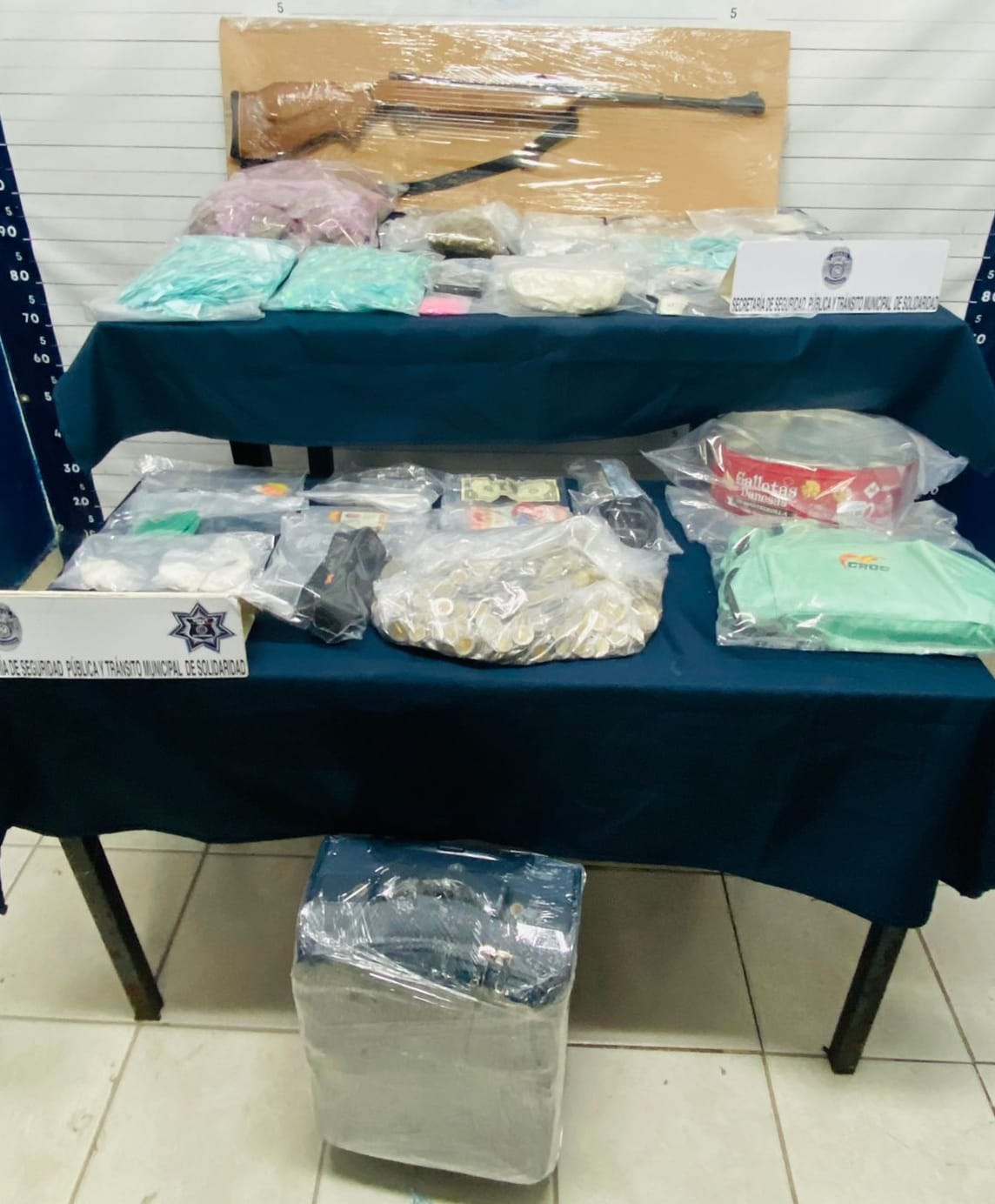 La Secretaría de Seguridad Pública y Tránsito Municipal de Solidaridad informó que al atender un reporte de venta de drogas en la colonia Centro, la noche del 1 de marzo, un elemento canino logró detectar más de 2 mil posibles dosis de narcóticos, una escopeta y dinero en efectivo tras atender un reporte de venta de drogas en la colonia Centro.