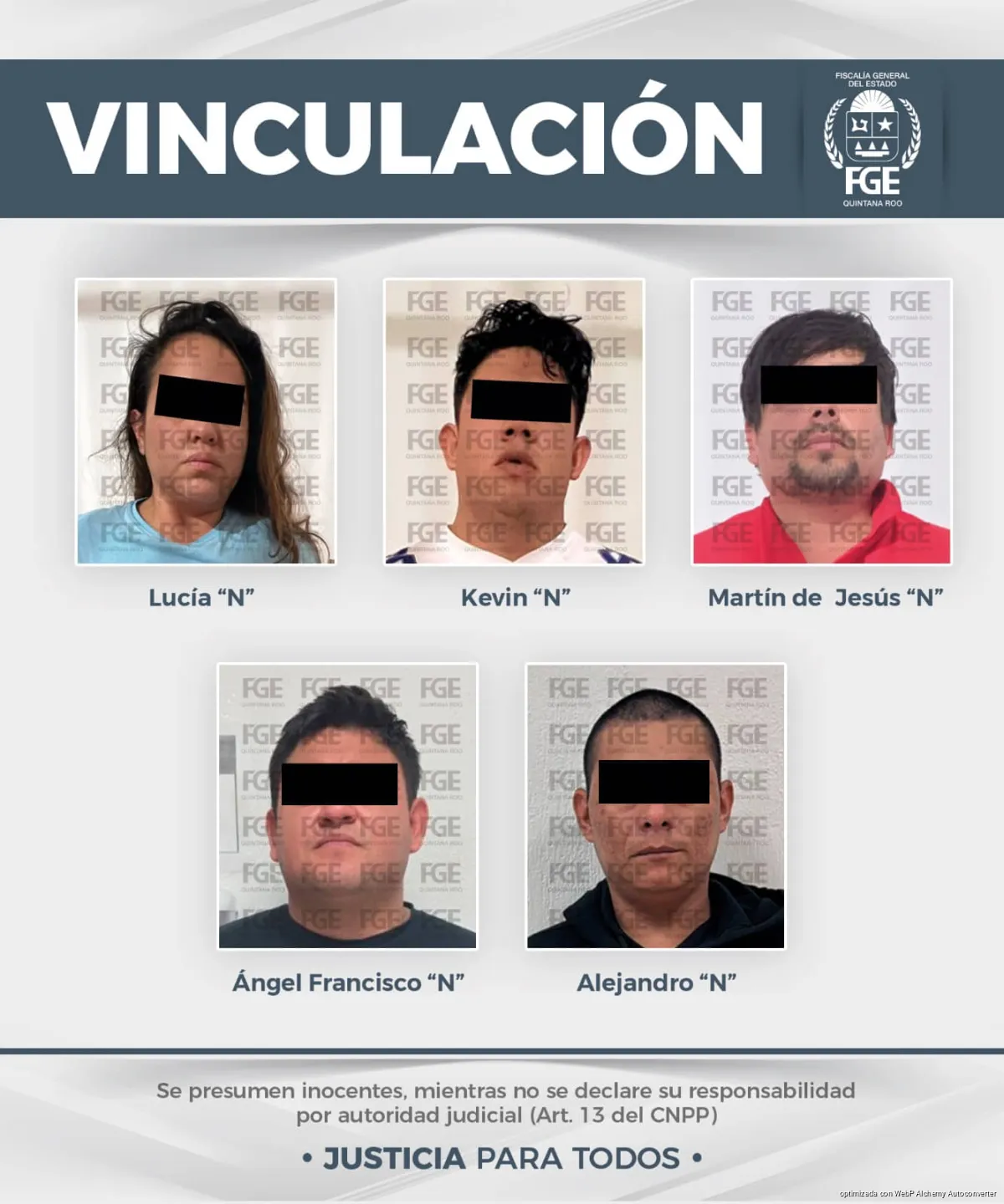 En Playa del Carmen, Martín de Jesús “N”, Ángel Francisco “N” y Lucía “N” fueron vinculados a proceso por posesión simple de marihuana. En el mismo municipio, Kevin “N” fue procesado por posesión con fines de suministro del mismo narcótico.
