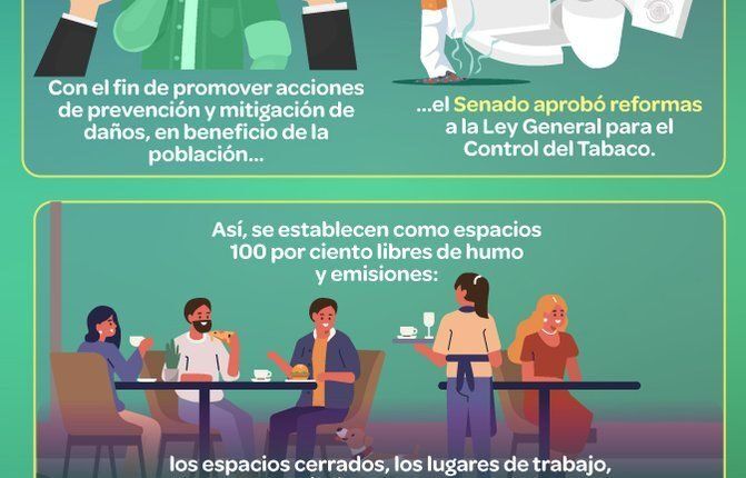 El pleno del Senado de la República aprobó establecer espacios 100% libres de humo de tabaco en todo el país, además prohibió la publicidad de los productos derivados de este producto, esto incluye los vapeadores.