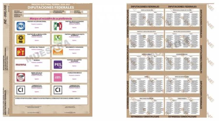El formato aprobado considera un total de 10 partidos políticos y dos espacios para candidatos independientes, divididos en dos columnas en donde los emblemas irregulares se ubican en la sección central, lo que de acuerdo con el estudio realizado por la UAM, generan un efecto óptico de semejanza, mientras que la distribución específica en tercios logra uno de simetría.