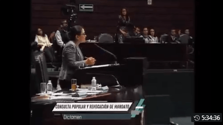 De la misma manera en medio de pancartas con la leyenda: “Revocación de mandato, prerrogativa ciudadana no de gobernantes”, la legisladora Adriana Gabriela Medina Ortíz, de Movimiento Ciudadano, pidió cambiar el dictamen para evitar que el autoritarismo se enmascare en la democracia.