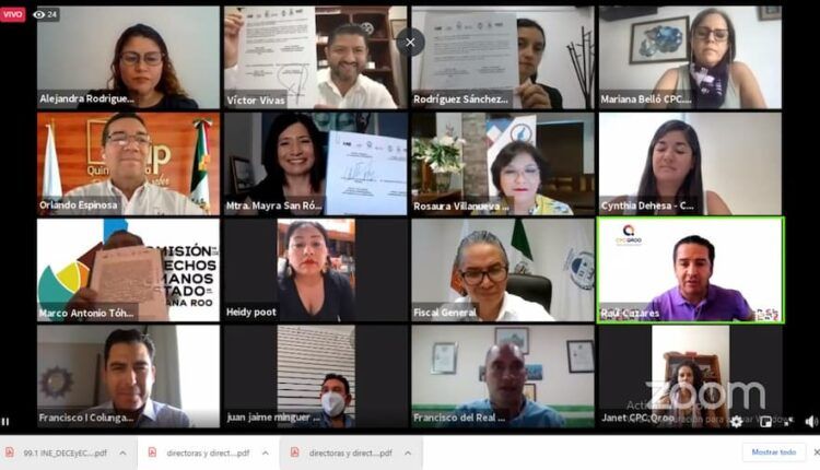 En este evento virtual, se contó con la participación de los titulares de diferentes dependencias y organismos como: Claudia Rodríguez Sánchez, Vocal Ejecutiva del INE en Quintana Roo; Óscar Montes de Oca Rosales, Fiscal General del Estado de Quintana Roo; Víctor Vivas Vivas, Magistrado Presidente del Tribunal Electoral del Estado de Quintana Roo; Rosaura Antonina Villanueva Arzapalo, Fiscal Especializado para Delitos por hechos de Corrupción del Estado de Quintana Roo.