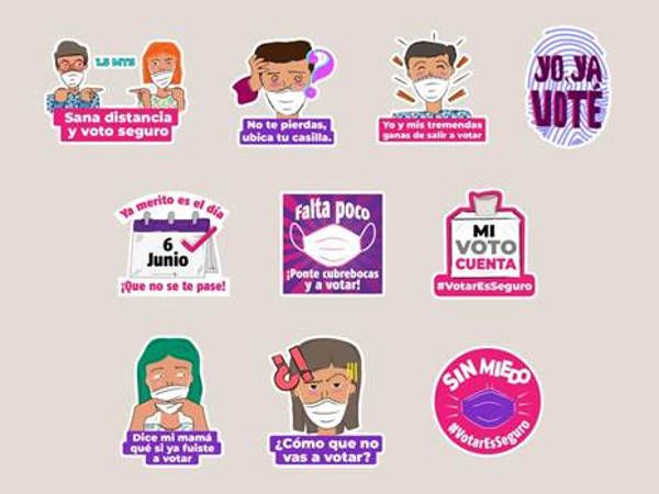 Como parte de la estrategia de llamado al voto, el INE y WhatsApp lanzaron también un paquete de stickers para el aplicativo de mensajes que tienen como objetivo acompañar e incentivar las conversaciones de la ciudadanía en torno a las elecciones. Los stickers, agrupados bajo el nombre «EleccionesMX2021» podrán ser descargados en el siguiente enlace: http://sticker.ly/s/51NK94