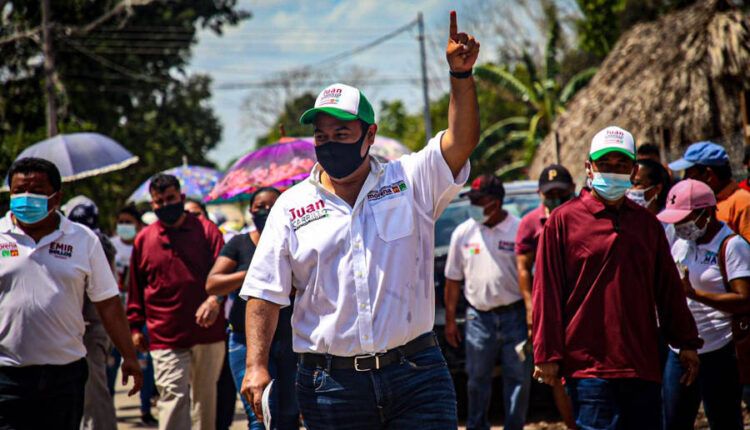 Juan Carrillo y Orlando Emir Bellos Tun, candidato a presidente municipal de Lázaro Cárdenas de la coalición Juntos Hacemos Historia conformada por los partidos Movimiento Regeneración Nacional (Morena), Partido Verde Ecologista de México (PVEM) y Partido del Trabajo (PT), recorrieron este viernes Kantunilkin y la comunidad de San Ángel.