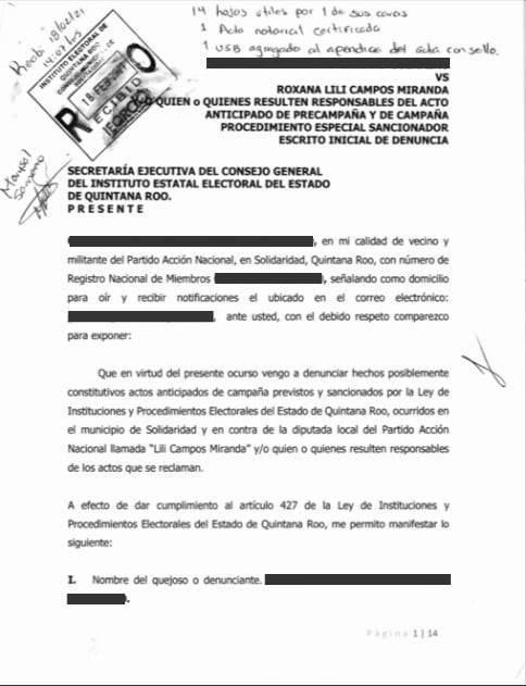 Militantes del PAN en Quintana Roo denunciaron a Lili Campos ante el IEQROO por actos anticipados de campaña, al publicar el pasado 4 de febrero un video a sus redes sociales anunciando su candidatura al municipio de Solidaridad, violando con ello abiertamente la Ley electoral y pasando por encima de los panistas en el municipio y el Estado.