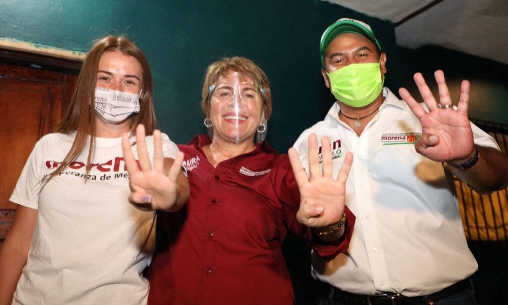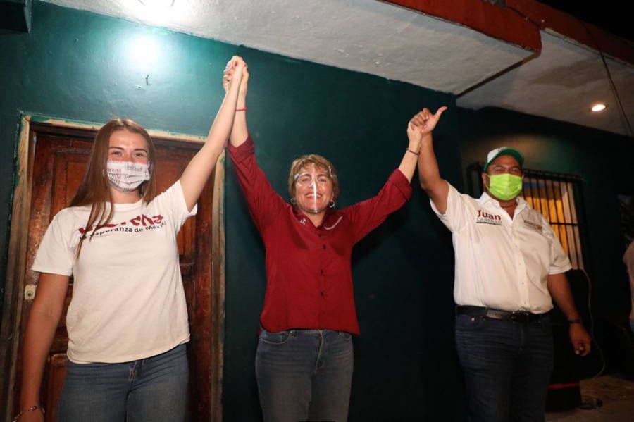 Solidaridad, Quintana Roo, a 13 de mayo de 2021. Esta noche, Laura Beristain Navarrete candidata de Morena, PT, Partido Verde y MAS, a la presidencia municipal de Solidaridad, visitó a vecinos de la colonia Luis Donaldo Colosio, a quienes les garantizó que seguirá haciendo todo lo posible para terminar de resolver, en definitiva, el añejo problema de la tenencia de tierra.