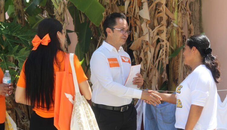 El abanderado naranja ha sido bien recibido por las familias solidarenses en colonias como Palmas 2, Misión de las Flores, Cataluña, Tumben Chilam, La Guadalupa y El Petén, entre otros.