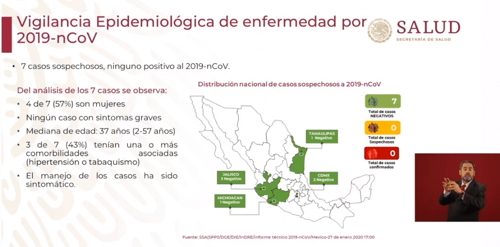 También precisó que hay 7 casos sospechosos de coronavirus en México, pero ninguno ha dado positivo.