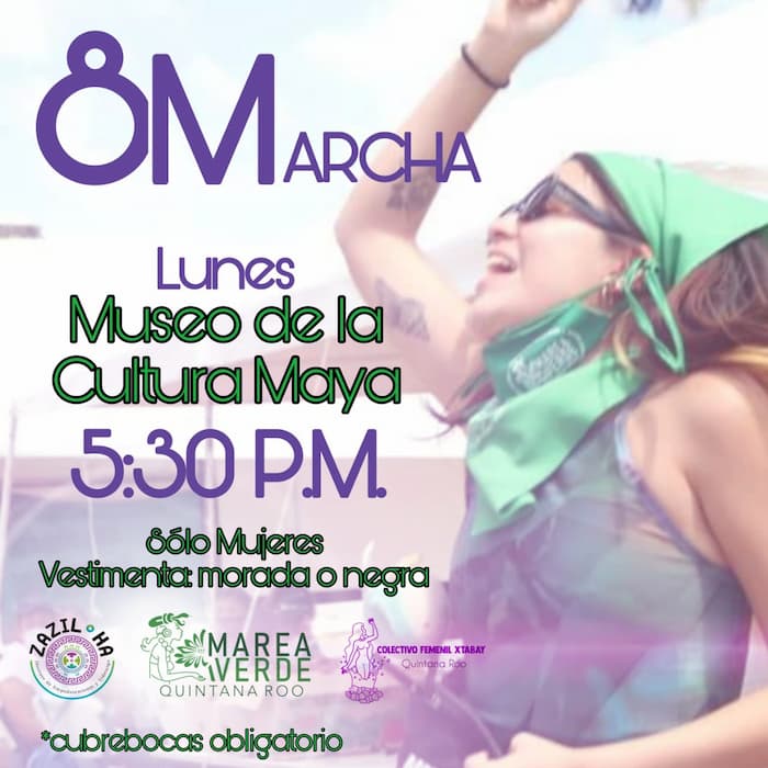 Marea Verde invita a la concentración que se llevará a cabo en Chetumal para celebrar el Día Internacional de la Mujer.