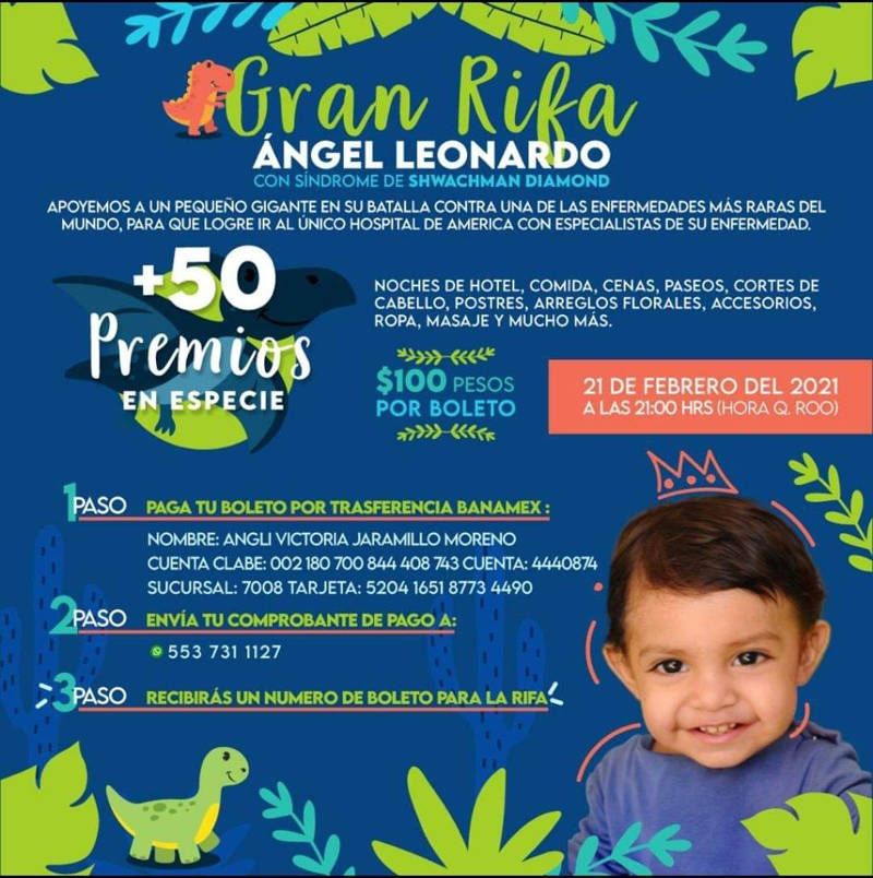 “Para que Leo viaje a Children’s Hospital Boston el único hospital en América que atiende la enfermedad es necesario actualizar todos los estudios, certificarlos, traducirlos y con el viaje necesitamos más de 120 mil pesos, con nuestra cartera ya no podemos. Hicimos un página en Facebook esta como Angel Leonardo Sds Shwachman Diamond, donde estamos haciendo una rifa, la donación la pueden hacer en las cuentas publicadas”, explicó la madre de Leo.