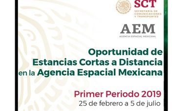 La Agencia Espacial Mexicana (AEM) publicó una nueva convocatoria para que estudiantes mexicanos puedan realizar una estancia a distancia entre el 25 de febrero y el 05 de julio de 2019, informó su Director General, el Dr. Javier Mendieta Jiménez.