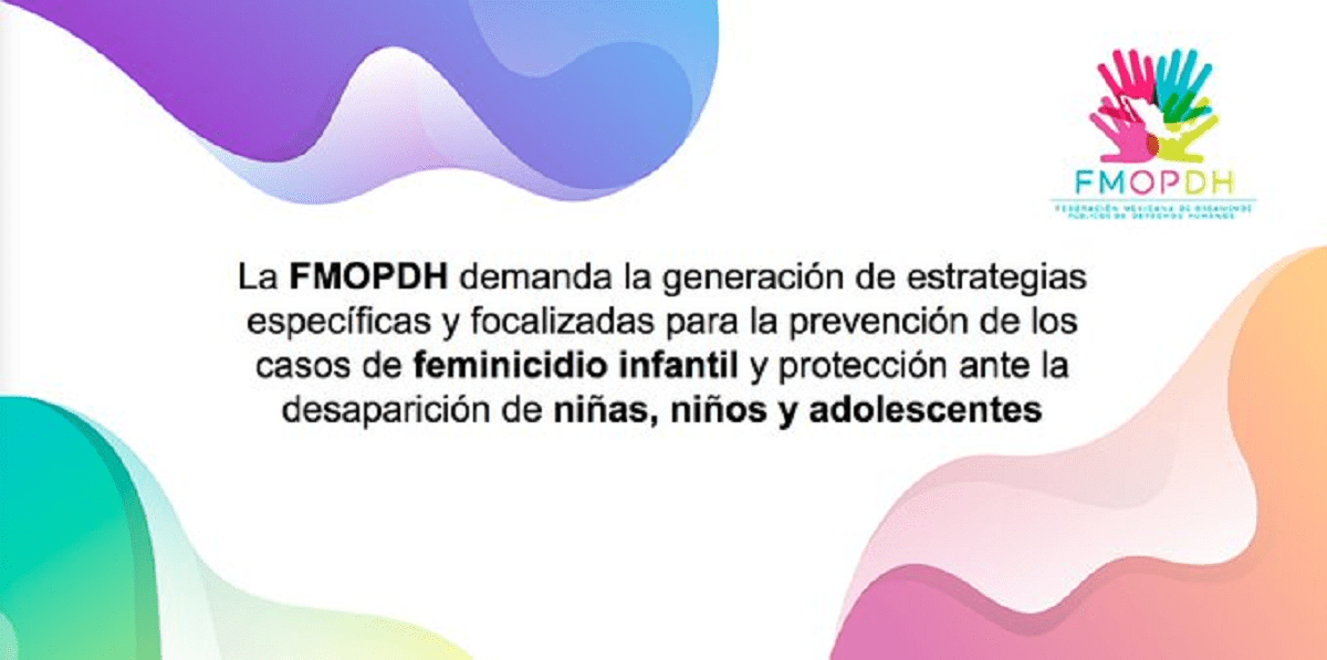 La FMOPDH demanda la generación de estrategias para la prevención de los casos de feminicidio infantil y protección ante la desaparición de niñas, niños y adolescentes