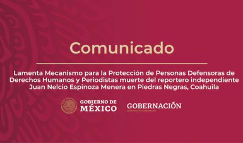 Lamenta Mecanismo para la Protección de Personas Defensoras de DH y Periodistas muerte del reportero Juan Nelcio Espinoza
