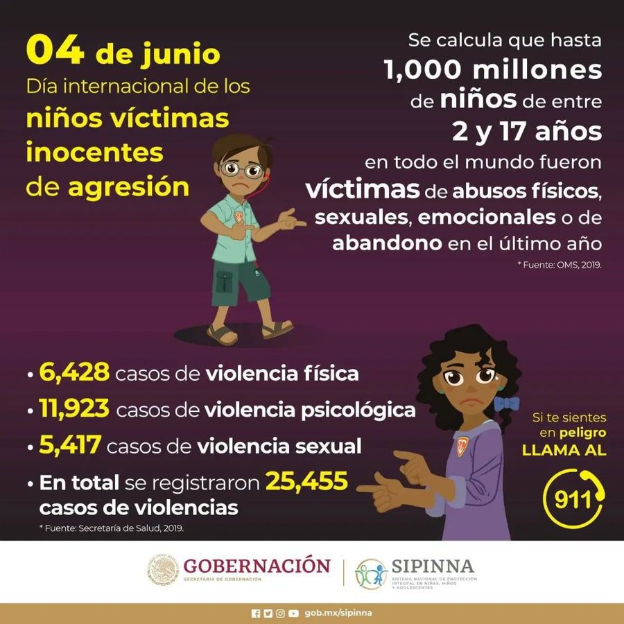 En el marco del Día internacional de los niños víctimas inocentes de agresión la Secretaría Ejecutiva del Sistema Nacional de Protección Integral de Niñas, Niños y Adolescentes (SPINNA) dio a conocer que cerca de mil millones de niños entre 2 y 17 años en todo el mundo fueron víctimas de abusos físicos, sexuales, emocionales o de abandono en el último año.