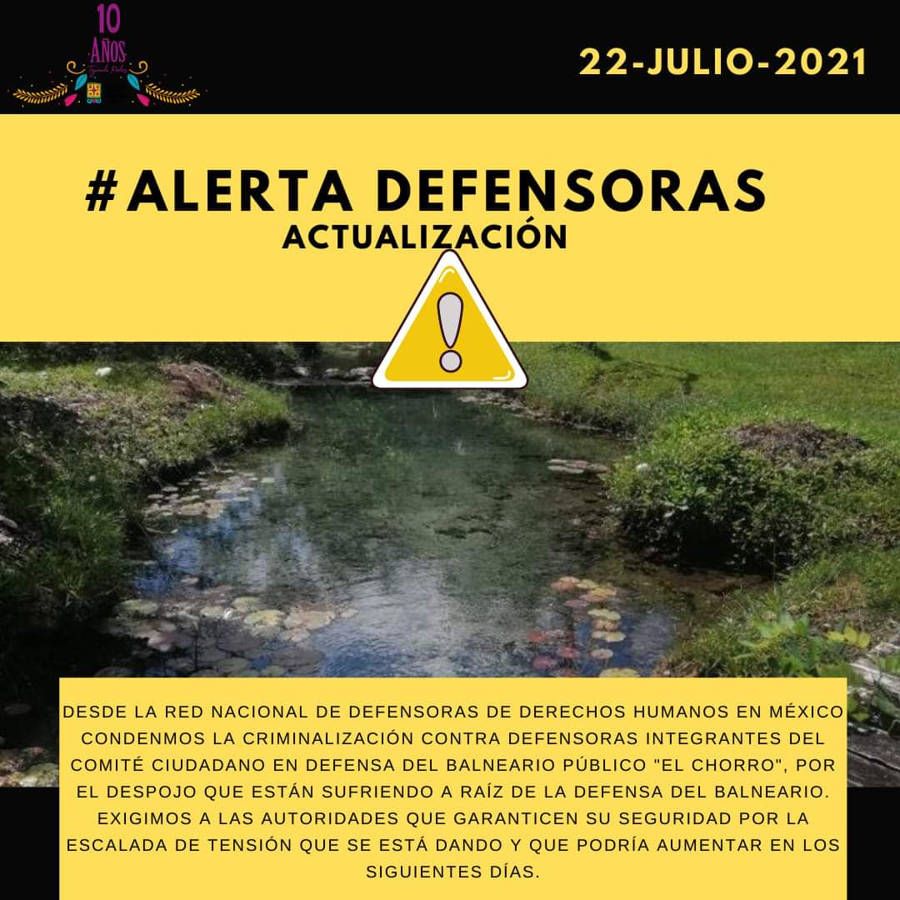 RNDDM exigen seguridad a defensoras del balneario “El Chorro”