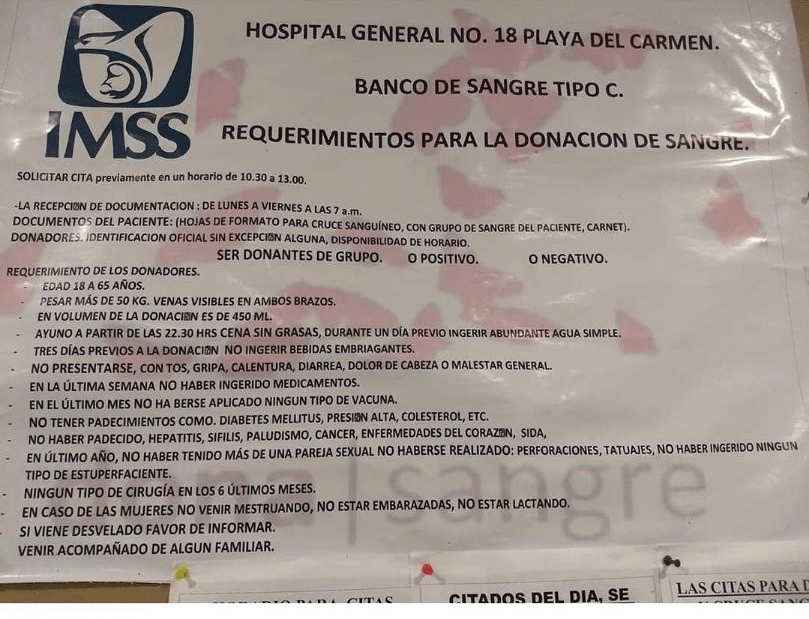 Se solicitan dos donadores de sangre tipo “O” positivo para la ciudad de Playa de Carmen.