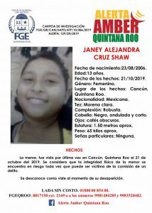 Solicitan ayuda para localizar a Janey Alejandra Cruz Shaw, quien fue vista por última vez en la ciudad de Cancún Quintana Roo en octubre de 2019.